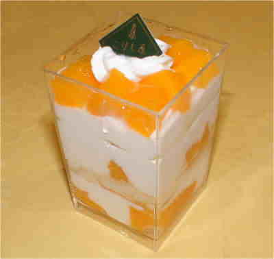 カレ・ソレイユ 卵白だけを使ったスポンジに ピーチをサンドしました。 325円 |
