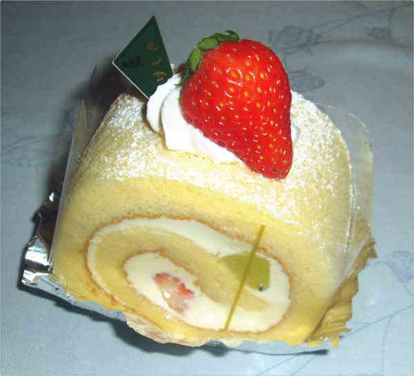 苺ロールケーキ イチゴ・キューイを 練乳クリームで巻いた ロールです。 350円 |
